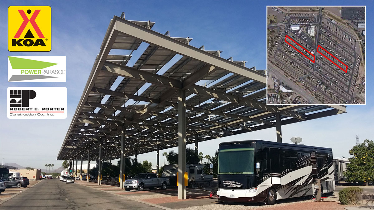Robert Porter Construction partnered with Strategic Solar Energy to install solar canopies at Tucson/ KOA Lazydays Campground and RV Park. The project consists of 3,500 solar panels installed on top of two large RV shade canopies covering 2 acres of land. A megawatt of renewable energy is generated and integrated into Tucson Electric Power’s grid. This is a first-of-its-kind project for KOA Kampgrounds of America.